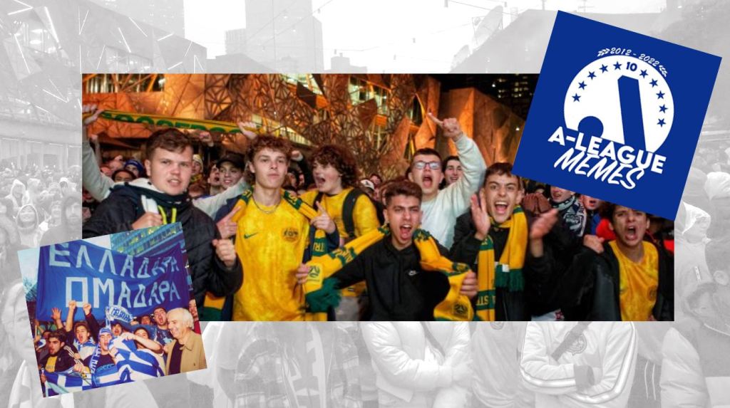 Shared memories like the 2005 World Cup Qualification have been vitally important to the football community. Live Site opportunities often require tight turnarounds and can be expensive to set up, meaning lobbying for Live Sites is difficult. Shared memories from previous experiences empower the community to pursue lobbying efforts. Of particular note were the successful illegal screenings of the 2021 Euro Cup in Melbourne, arranged by members of the Italian Community. The eventual victory by Italy saw thousands party on Lygon Street on a weekday morning. The event elicited memories of the 2004 Greek campaign, as professionals once again soaked in an unexpected atmosphere on their way to work. Images of the Lygon Street celebrations went viral nationally, and reminded the Australian Football community of the power of Live Sites ahead of the 2022 World Cup Tournament. However as the tournament drew nearer fans were shocked to learn there would be no major public screenings of the Socceroos’ matches. However, an unlikely hero emerged, in the form of the A-League Memes twitter page. The meme page successfully coordinated a last minute campaign for the fans, and resulted in Federation Square screening of the Socceroos’ World Cup games.