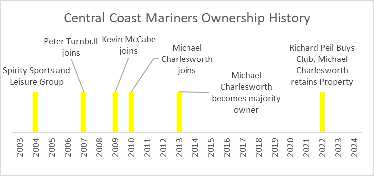 In 2022 Richard Peil, Canberra based fitness businessman, took majority ownership of the club with Michael Charlesworth retaining a minority ownership of the club. Michael Charlesworth also retained full ownership of the Mariners Centre of Excellence in Tuggerah.