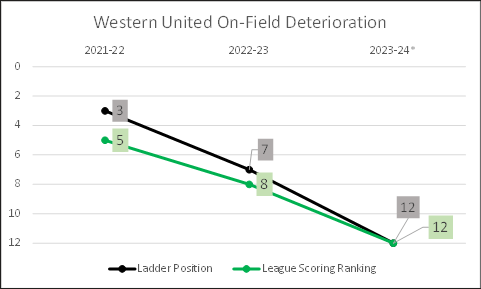 Western United have scored the least goals in the A-League this season and are firmly planted at the bottom of the ladder. Just two years ago Western United were crowned A-League Champions, why are they struggling upfront this season?
