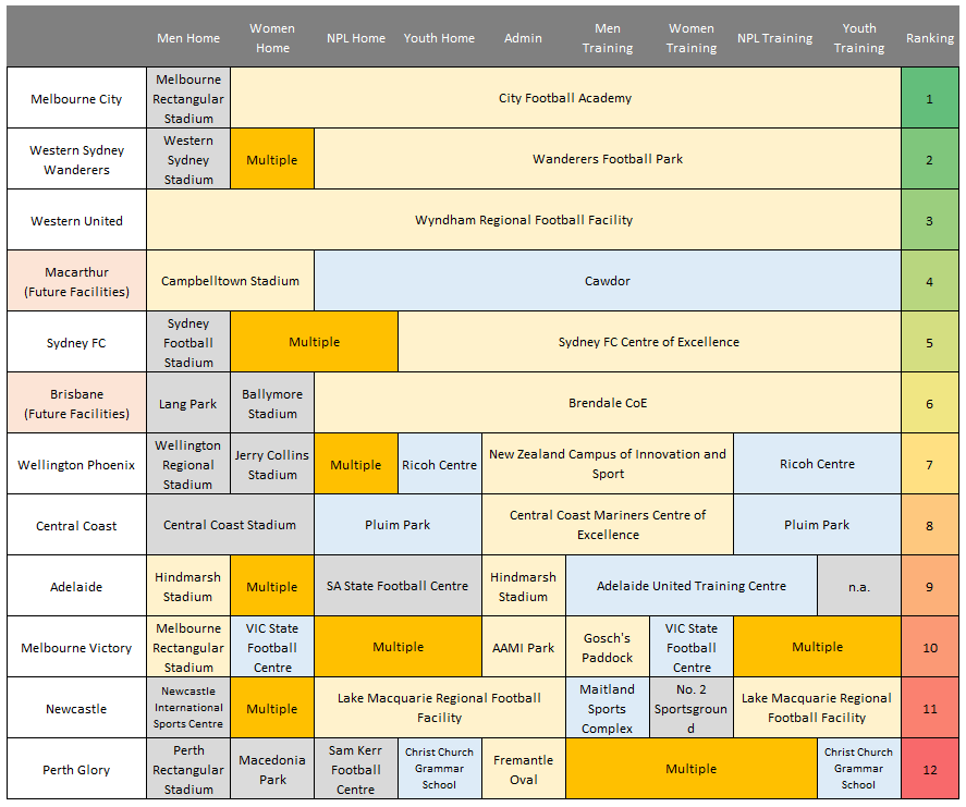 There are constantly conversation about A-League facility issues but these are often specific and viewed in isolation. We feel that there has been limited holistic analysis of A-League club facilities arrangements. As such, we have analysed the facility arrangements of every current A-League Men club. In doing so, we uncovered a number of lessons and insights which every football fans in Australia should know.