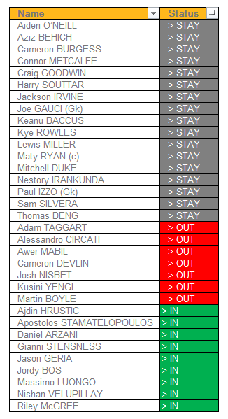 Popovic has selected a larger and more attacking squad which sees the return of Hrustic, Stamatelopoulos, Arzani and the notable inclusion of Nishan Velupillay.